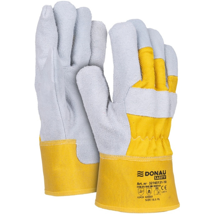 Rękawice robocze DONAU SAFETY DS-DOKBASIC, doker, dwoina bydlęca, rozm. 10,5/XL, szaro-żółte - 32165131-10