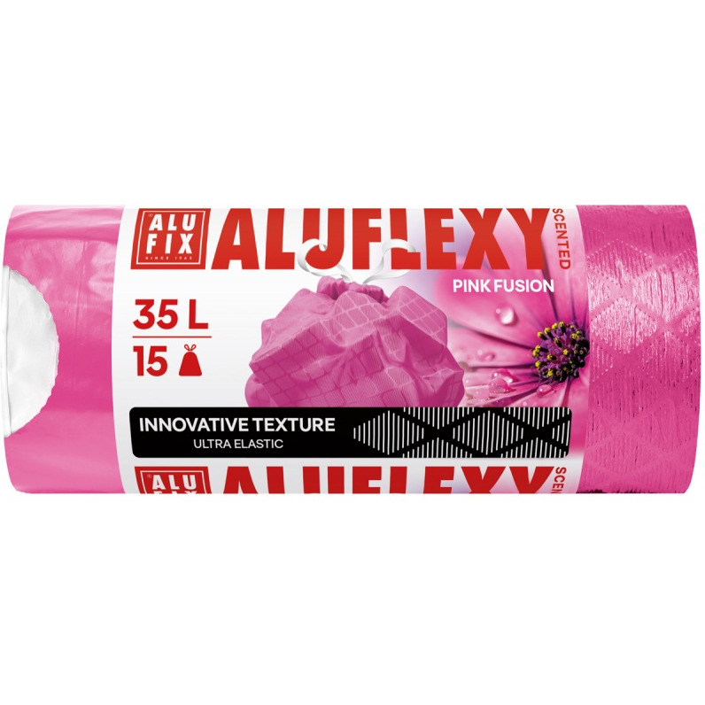 Worki na śmieci ALUFIX Aluflexy, zapach, LDPE, 35l, 15 szt., różowe - BS-AX-670592