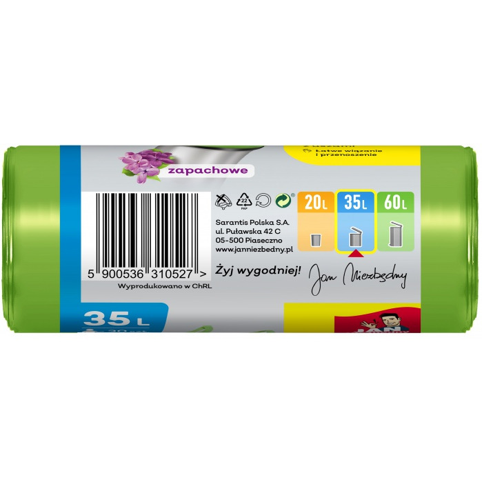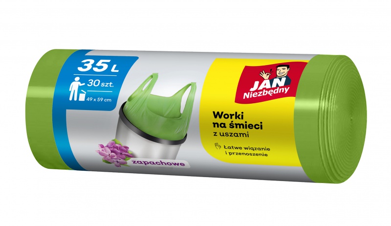 Worki na śmieci JAN NIEZBĘDNY, HDPE, t-shirt, 35l, 30szt., zielone - SA-JN-310527