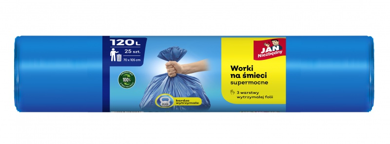Worki na śmieci JAN NIEZBĘDNY, LDPE, 120l, 25 szt., niebieskie - SA-JN-104409