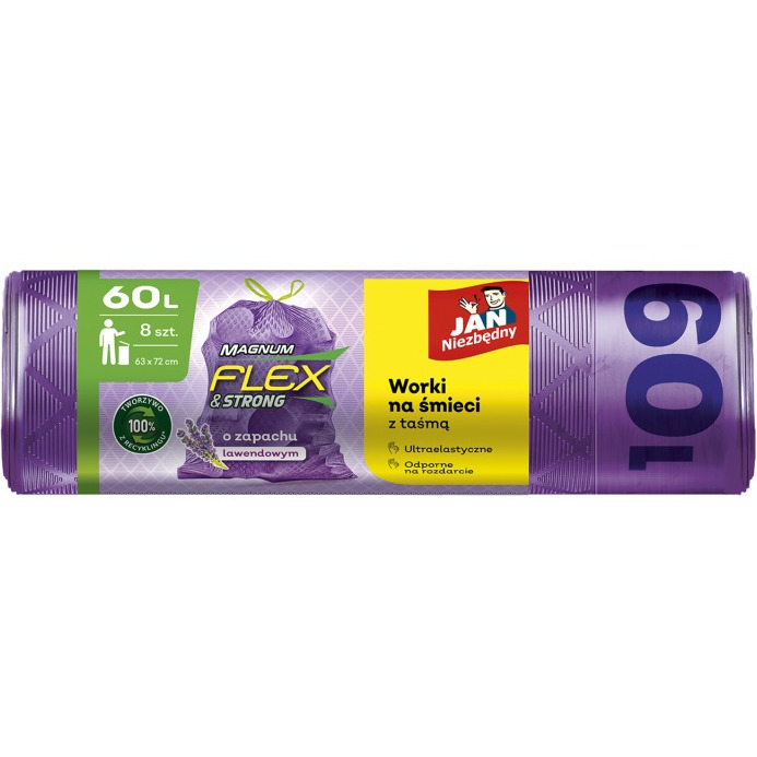 Worki na śmieci JAN NIEZBĘDNY, magnum flex, z taśmą, 60l, 8szt., lawendowe - SA-JN-349510