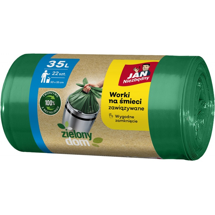 Worki na śmieci JAN NIEZBĘDNY, zielony dom, easy pack, 35l, 22szt., zielone - SA-JN-335193