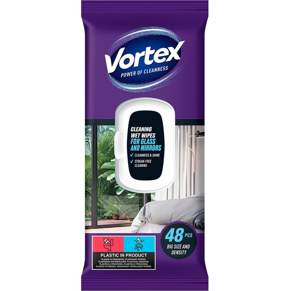 Chusteczki nawilżane VORTEX, do szyb i luster, z klapką, 48 szt. - BS-VR-662771