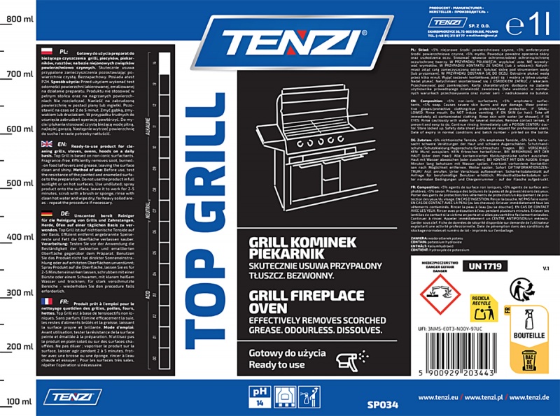 Płyn do czyszczenia przypaleń z grilli, piecyków i rusztów TENZI, Top Grill, 1l - TNUN-WSP034A001AY000