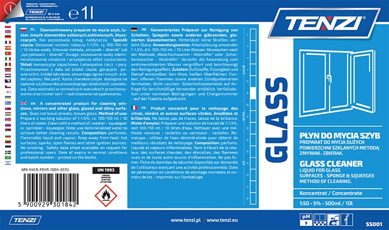 Płyn do mycia okien TENZI, Glass, 1l - TNUN-WSS001A001BF000