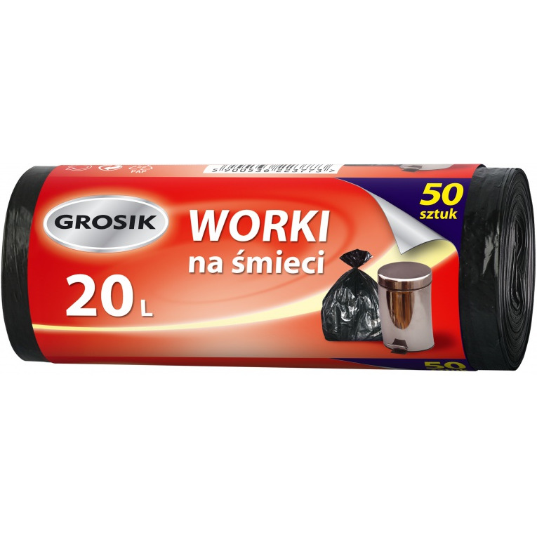 Worki na śmieci GROSIK, HDPE, 20l, 50 szt., czarne - SA-GR-223773