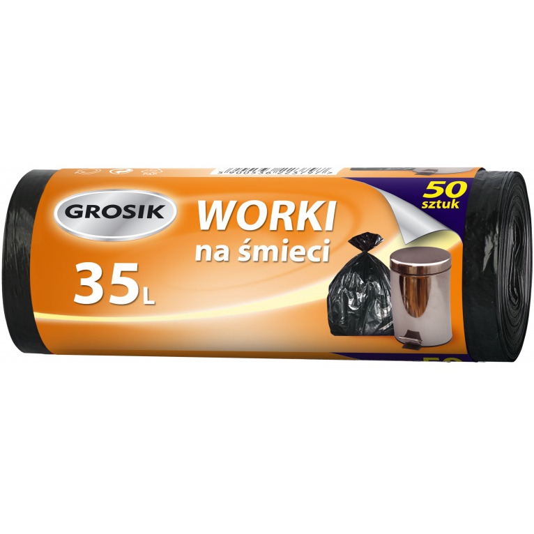 Worki na śmieci GROSIK, HDPE, 35l, 50 szt., czarne - SA-GR-223797