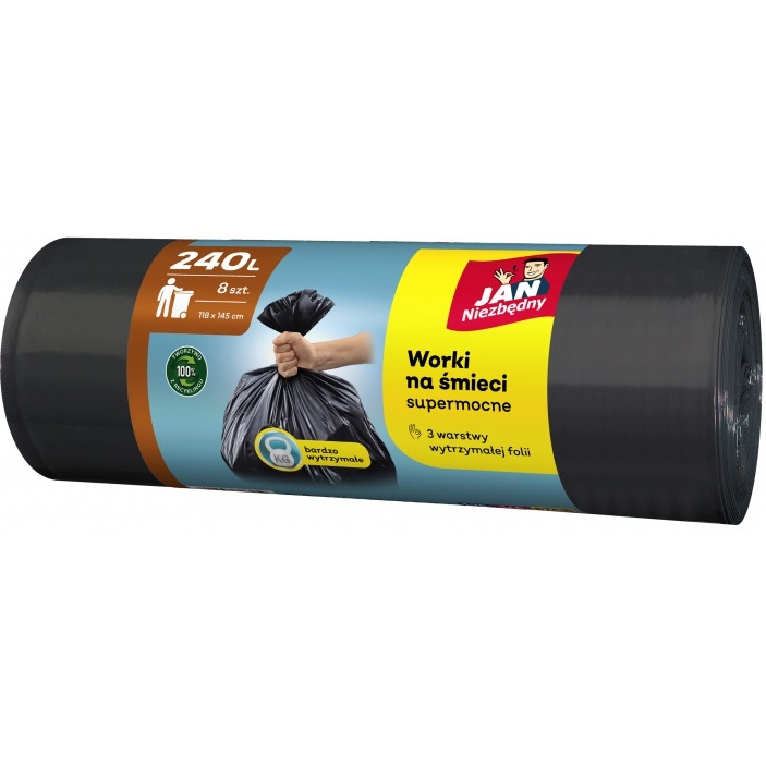 Worki na śmieci JAN NIEZBĘDNY, 240l, 8szt., czarne - SA-JN-318059