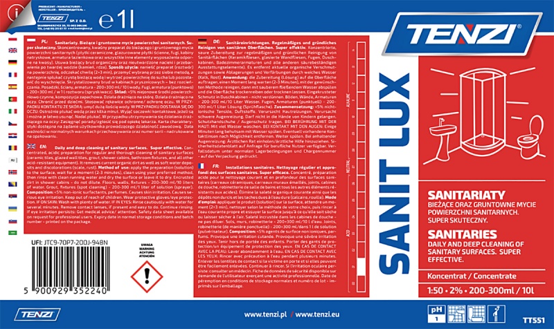 Koncentrat do gruntownego mycia powierzchni sanitarnych TENZI, Sanit Lux, 1l - TNUN-WTT551A001ZA004