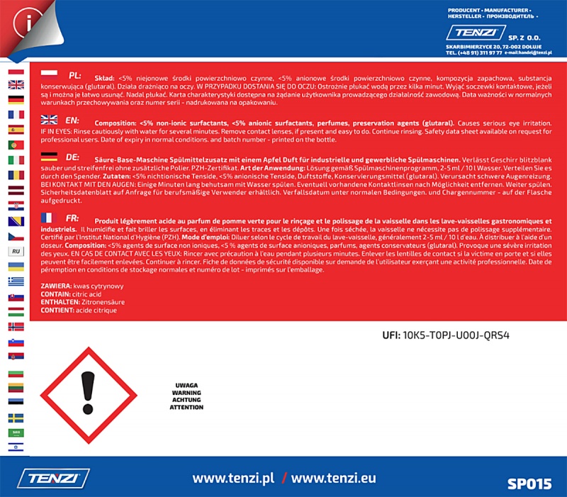 idealnie myje i nabłyszcza naczynia w zmywarkach gastronomicznych i przemysłowych
