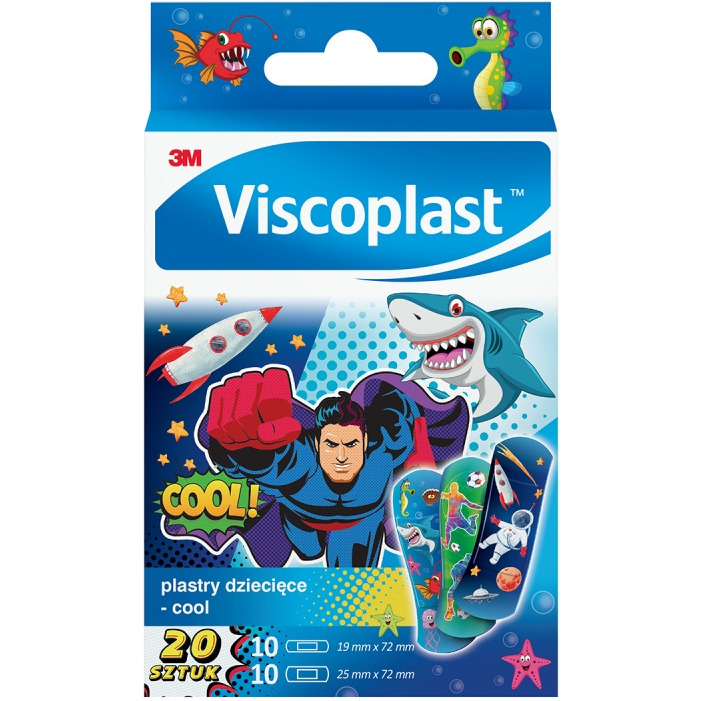 Plastry dziecięce VISCOPLAST Cool, 2 rozmiary, 20 szt., pudełko, VISCOPLAST-3M - 3M-4054596879201