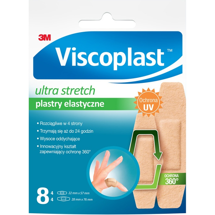 Plastry VISCOPLAST Ultra Stretch, elastyczne, 2 rozmiary, 8 szt., kopertka, VISCOPLAST-3M - 3M-4064035032104
