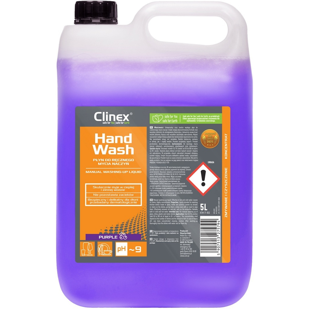 Płyn CLINEX HandWash, do ręcznego mycia naczyń, purple, 5l - CL77053