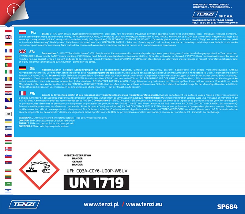 skoncentrowany, wysokoalkaliczny, niskopieniący płyn do mycia naczyń w zmywarkach