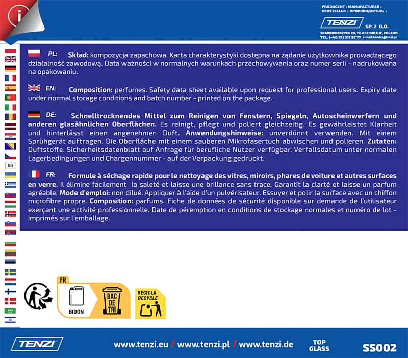 Płyn do mycia szyb i luster TENZI, Top Glass, 5l - TNUN-WSS002A005AU000
