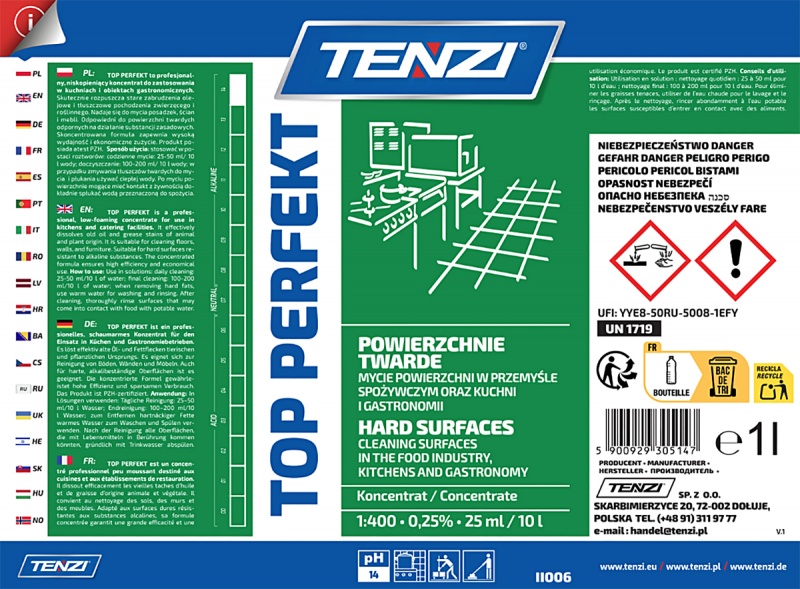 Środek odtłuszczająco-myjący do powierzchni twardych TENZI, Top Perfekt, atest PZH, 1l - TNUN-WII011A001AD000