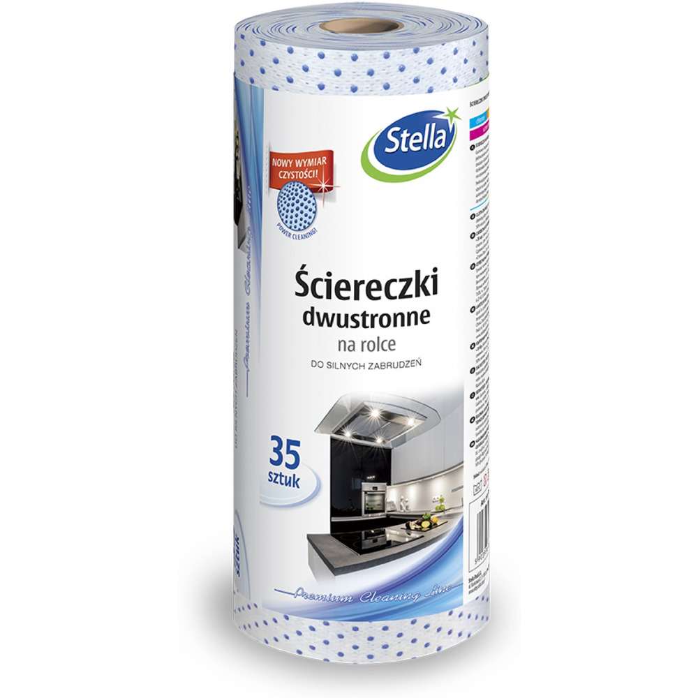 Ściereczki dwustronne STELLA, na rolce do silnych zabrudzeń, 35 szt., jasnoniebieska, granatowe kropki - ST-ST-022656